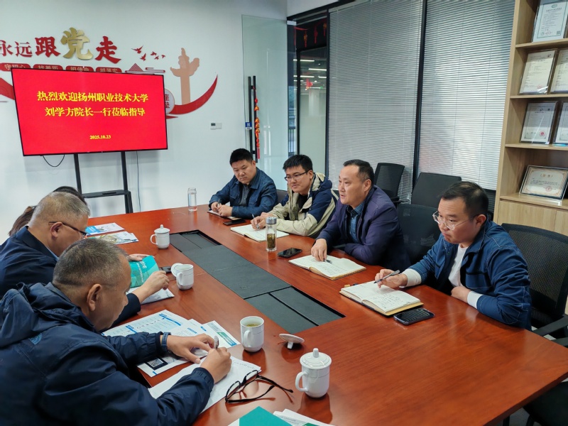 为深化产教融合、推进校企协同育人,10月23日,扬州职业技术大学资源与环境工程学院院长刘学方、教师宋万召、周志成、刘露一行赴苏州昆山,走进江苏苏力环境仪器有限公司(江苏省环保集团子公司)开展交流访问。苏力董事长谢继征、总经理侯鹏、副总经理卢钰、总经理助理冯华热情接待并全程陪同。