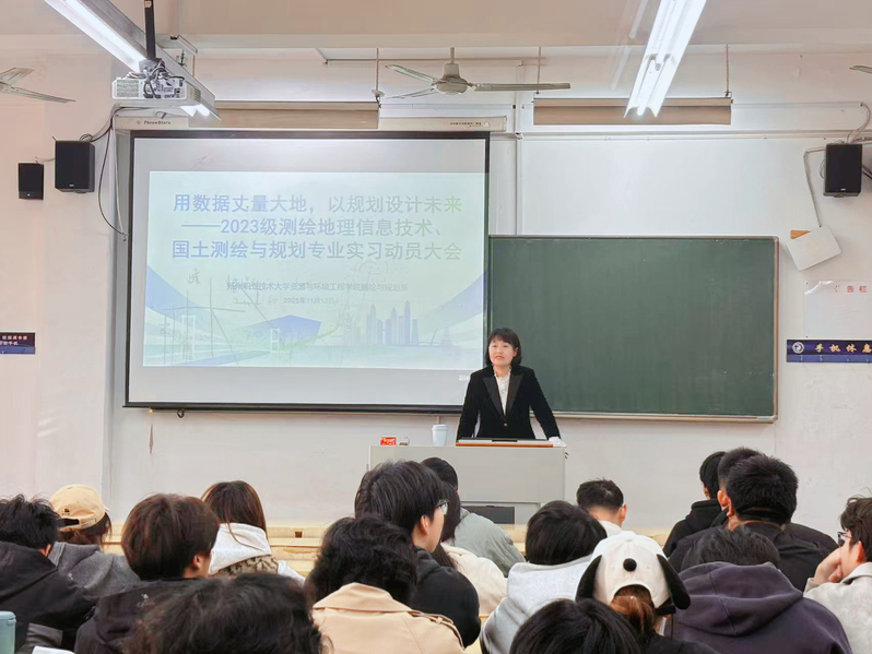 为深化产教融合,助力学生从校园迈向职场,学院测绘与规划系2023级测绘地理信息技术、国土测绘与规划专业实习动员大会于2025年11月12日在瘦西湖校区崇文楼A302举行。参加此次会议的有学院党总支书记王海玫、党总支副书记倪赛男、测绘与规划系专任教师及2023级相关专业学生。