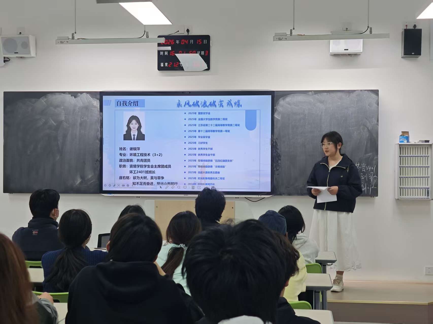 为发挥优秀学生榜样示范作用,引导25级新生明确成长方向、合理规划大学生活,4月15日下午,资源与环境工程学院举办国家奖学金获奖学生优秀事迹宣传活动,25级各班班长、团支书、学习委员到场参加。